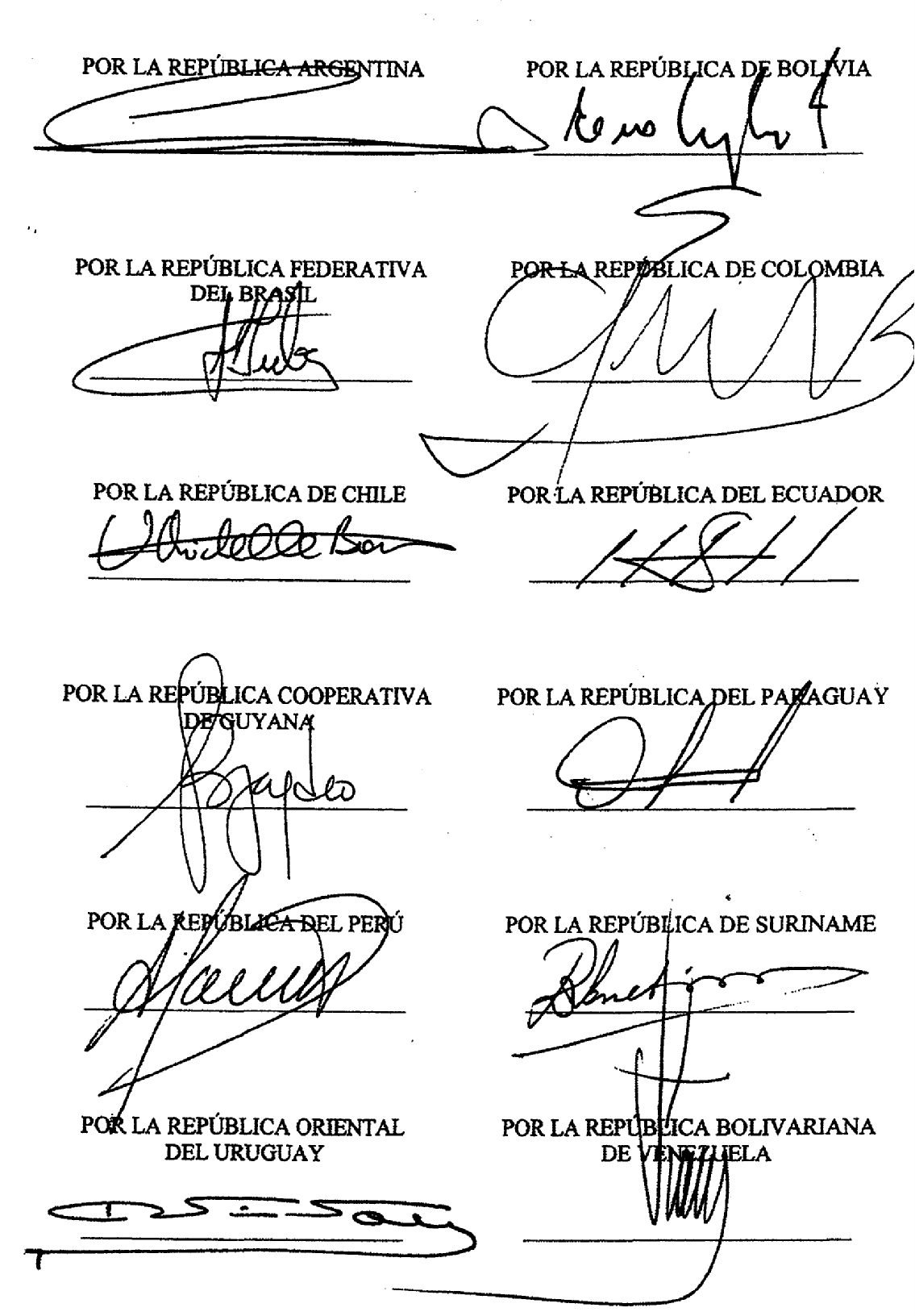 LA SUSCRITA COORDINADORA DEL ÁREA DE TRATADOS DE LA OFICINA ASESORA JURÍDICA DEL MINISTERIO DE RELACIONES EXTERIORES CERTIFICA: Que la reproducción del texto que antecede es fotocopia fiel y completa, del texto en idioma castellano, del "Tratado Constitutivo de la Unión de Naciones Suramericanas", suscrito en la ciudad de Brasilia, República Federativa del Brasil, a los veintitrés días del mes de mayo del año dos mil ocho, tomada de la copia certificada por el Director General de Tratados del Ministerio de Relaciones Exteriores de la República del Ecuador, documento que reposa en los archivos de la Oficina Jurídica de este Ministerio. Dada en Bogotá, D. C., a los cinco (5) días del mes de febrero de dos mil nueve (2009). La Coordinadora Área de Tratados, Oficina Asesora Jurídica, MARGARITA ELIANA MANJARREZ HERRERA. RAMA EJECUTIVA DEL PODER PÚBLICO PRESIDENCIA DE LA REPÚBLICA Bogotá, D. C., 23 de febrero de 2009 Aprobado. Sométase a la consideración del Honorable Congreso Nacional para los efectos constitucionales. (Fdo.) ÁLVARO URIBE VÉLEZ El Ministro de Relaciones Exteriores, (Fdo.) JAIME BERMÚDEZ MERIZALDE. DECRETA: Artículo 1°. Apruébese el "Tratado Constitutivo de la Unión de Naciones Suramericanas", hecho en Brasilia, Brasil, el veintitrés de mayo de dos mil ocho. Artículo 2°. De conformidad con lo dispuesto en el artículo 1° de la Ley 7ª de 1944, el "Tratado Constitutivo de la Unión de Naciones Suramericanas", hecho en Brasilia, Brasil, el veintitrés de mayo de dos mil ocho, que por el artículo 1° de esta ley se aprueba, obligará al país a partir de la fecha en que se perfeccione el vínculo internacional respecto del mismo. Artículo 3°. La presente ley rige a partir de la fecha de su publicación. Dada en Bogotá, D.C., a los ... Presentado al Honorable Congreso de la República por el Ministro de Relaciones Exteriores y el Ministro de Hacienda y Crédito Público. El Ministro de Relaciones Exteriores, JAIME BERMÚDEZ MERIZALDE. El Ministro de Hacienda y Crédito Público, ÓSCAR IVÁN ZULUAGA. RAMA EJECUTIVA DEL PODER PÚBLICO PRESIDENCIA DE LA REPÚBLICA Bogotá, D. C., 23 de febrero de 2009 Aprobado. Sométase a la consideración del Honorable Congreso Nacional para los efectos constitucionales. (Fdo.) ÁLVARO URIBE VÉLEZ El Ministro de Relaciones Exteriores, (Fdo.) JAIME BERMÚDEZ MERIZALDE. DECRETA: Artículo 1°. Apruébese el "Tratado Constitutivo de la Unión de Naciones Suramericanas", hecho en Brasilia, Brasil, el veintitrés de mayo de dos mil ocho. Artículo 2°. De conformidad con lo dispuesto en el artículo 1° de la Ley 7ª de 1944, el "Tratado Constitutivo de la Unión de Naciones Suramericanas", hecho en Brasilia, Brasil, el veintitrés de mayo de dos mil ocho, que por el artículo 1° de esta ley se aprueba, obligará al país a partir de la fecha en que se perfeccione el vínculo internacional respecto del mismo. Artículo 3°. La presente ley rige a partir de la fecha de su publicación. El Presidente del honorable Senado de la República, ARMANDO BENEDETTI VILLANEDA. El Secretario General del honorable Senado de la República, EMILIO RAMÓN OTERO DAJUD. El Presidente de la honorable Cámara de Representantes, CARLOS ALBERTO ZULUAGA DÍAZ. El Secretario General de la honorable Cámara de Representantes, JESÚS ALFONSO RODRÍGUEZ CAMARGO. REPÚBLICA DE COLOMBIA - GOBIERNO NACIONAL Comuníquese y cúmplase. Ejecútese, previa revisión de la Corte Constitucional, conforme al artículo 241-10 de la Constitución Política. Dada en Bogotá, D. C., a 28 de enero de 2011. El Ministro del Interior y de Justicia de la República de Colombia, delegatario de funciones presidenciales mediante Decreto número 118 de 2011. GERMÁN VARGAS LLERAS La Ministra de Relaciones Exteriores, MARÍA ÁNGELA HOLGUÍN CUÉLLAR. El Viceministro General del Ministerio de Hacienda y Crédito Público, encargado de las funciones del Despacho del Ministro de Hacienda y Crédito Público, WILLIAM BRUCE MAC MASTER ROJAS. El Viceministro de Desarrollo Empresarial del Ministerio de Comercio, Industria y Turismo, encargado de las funciones del Despacho del Ministro de Comercio, Industria y Turismo, CARLOS ANDRÉS DE HART PINTO. NOTA: Publicada en el Diario Oficial 47966 de enero 28 de 2011. |