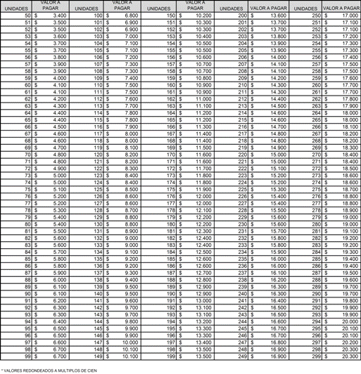 Parágrafo. La tabla de conversión de unidades a pesos, será la señalada en el anexo 1 de este Decreto.