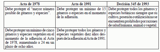 El Acta de 1991 exige la concesión de la protección para las variedades vegetales de todos los géneros y especies vegetales, en igual forma lo contempla la Decisión 345.