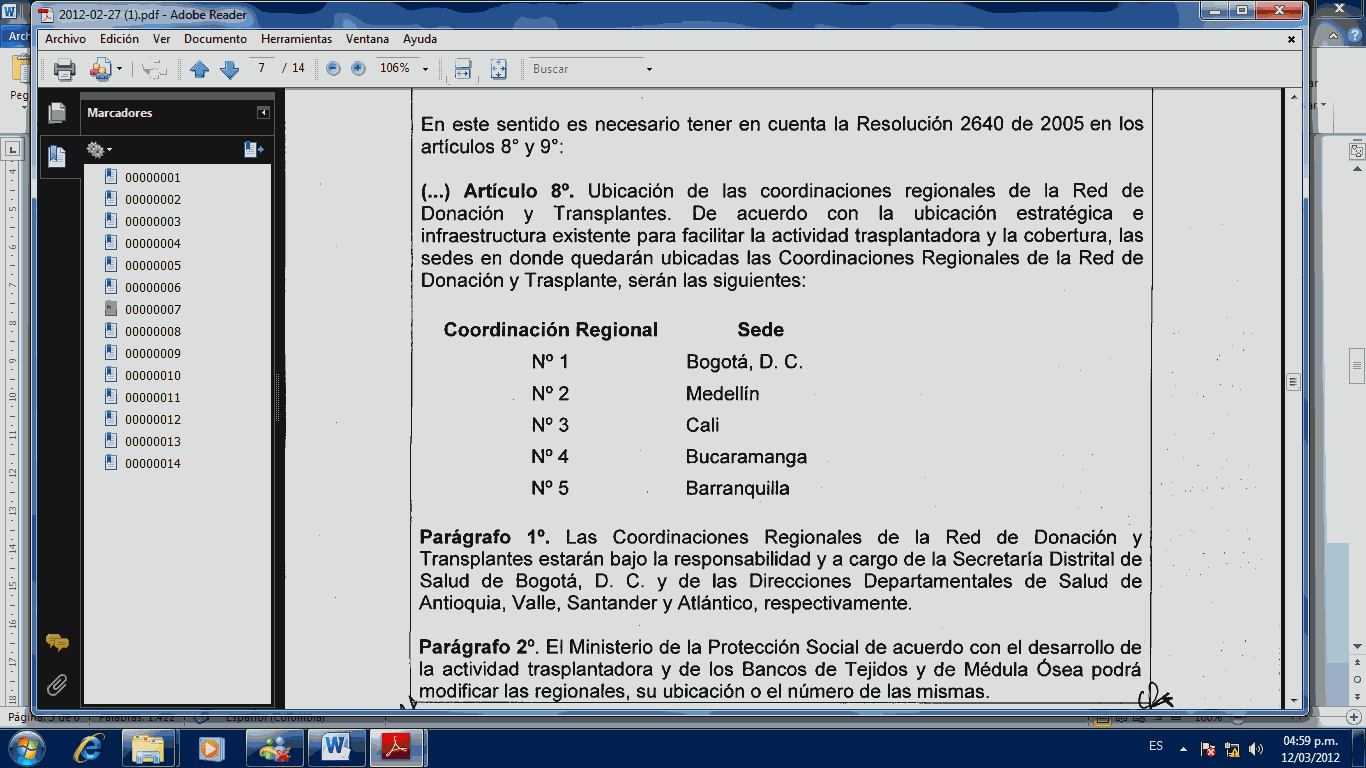 Sin embargo, cabe resaltar las regiones del país que registran las cifras más altas de aceptación a la donación, en su orden son: la Regional Nº 2 de la Red de Donación y Trasplantes, cuya área de jurisdicción son los departamentos de Antioquia, San Andrés y Providencia, Chocó, Córdoba y Caldas; y la Regional Nº 1 de la cual hace parte Bogotá y los departamentos el suroriente del país3. En este sentido, todos los esfuerzos que se hagan para incentivar, reconocer y exaltar los el fortalecimiento de la cultura de donación de órganos y tejidos, deben ser un compromiso del Concejo de Bogotá.
