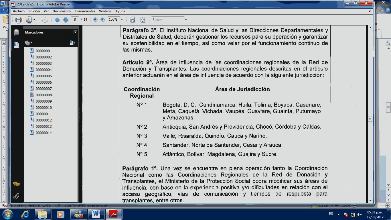 En este sentido es necesario considerar que la coordinación de la Regional 1 está a cargo de Bogotá, en cabeza de la Secretaria Distrital de Salud. Es necesario considerar el concepto positivo radicado bajo el consecutivo 29954 por la Secretaria de Salud que con respecto al proyecto 008 de 2012 señala: