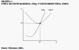 La Gráfica 1 describe el comportamiento de los costos marginal (CMg) y medio total (CMeT), donde el ingreso marginal o tarifa mínima ajustada (P) que debería cobrarse por prestar el servicio se encuentra en el eje Y. Dicha tarifa está determinada por la cantidad óptima (Q) –en el eje X, número de minutos de parqueo–, la cual establece el comportamiento de una función de costo total (CT) de producción para un aparcadero. Por consiguiente, el punto A representa la condición y el monto requerido para P, concebido a través del cruce entre CMg y CMeT (Cuadro 1). Donde β0 , β1 , α0 , α1 , α2 , γ0 , γ1 , γ2 , γ3 , δ0 y δ1 describen los respectivos parámetros en cada modelo, mientras que θ y λ son los coeficientes de transformación no lineales para la función Box-Cox. En este sentido, de acuerdo con Campus y De Rus (2004), en los costos en los que incurre el propietario del aparcadero deben estar incluidos los necesarios para construirlo, operarlo y mantenerlo, además de los costos operativos, requeridos para producir el servicio (gastos de personal, energía, arriendo, otros). Así, igualando CMg y CMeT, puede obtenerse la cantidad de tiempo óptima (minutos, Q) de ocupación que debería vender el propietario del aparcadero con el fin de incurrir en el mínimo costo. Con este valor, y reemplazándolo en la ecuación 1, es posible calcular la tarifa mínima mediante la cual el dueño cumpliría el objetivo de maximizar su beneficio, dado que el ingreso marginal (P) iguala el costo marginal (ecuación 1). P= Cmg (1) Pt = P(1 + ˆ P) + CF (2