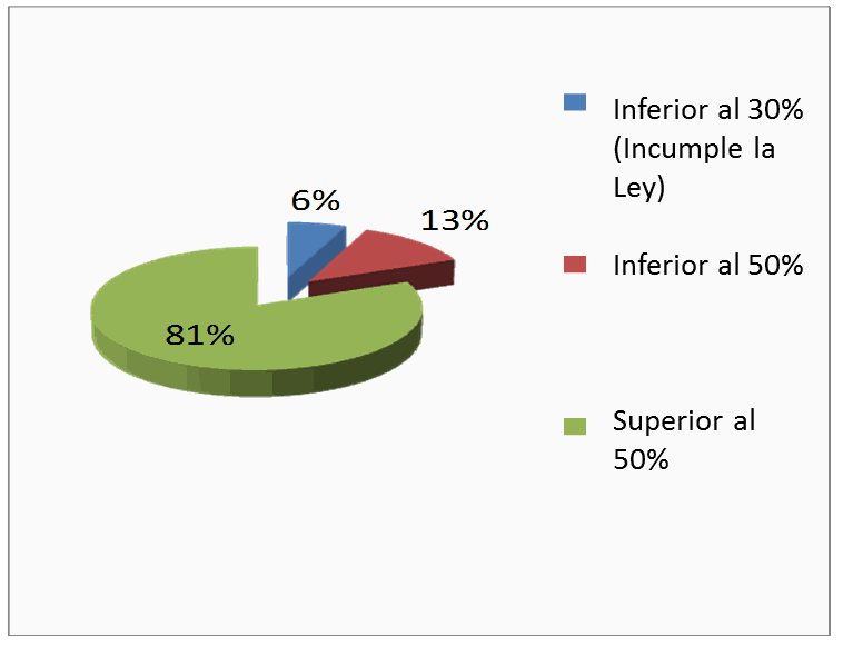 Actualmente la participación de la Mujer en los cargos máximos de nivel decisorio en el Distrito capital, cumple a cabalidad con el porcentaje mínimo establecido en la ley de cuotas del 30 %, así:
