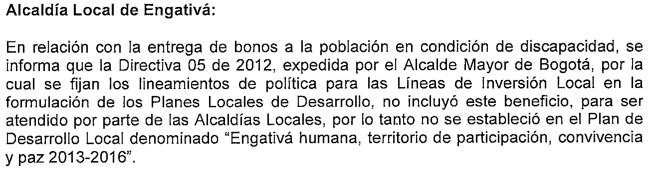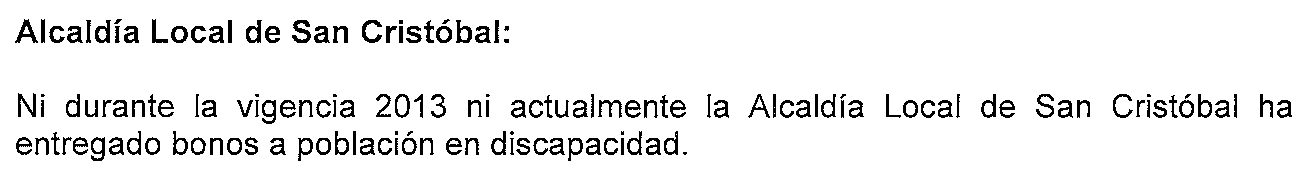 Como se observa la administración distrital redujo en el territorio las inversiones a la población en discapacidad a las ayudas técnicas y no vinculó recursos para apoyar el papel de los Consejos Locales de Discapacidad.