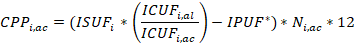 Consumo Corregido por Pérdidas - CCP: Es el volumen de agua suministrada ajustado por el volumen de pérdidas permitidas para cada uno de los años de proyección, medido en metros cúbicos (m3).