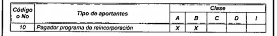 Tabla 10. R05 - Regla de validación - Tipo de cotizante vs. Clase de aportantes