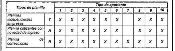 Resultado: Cuando en la información de una planilla reportada por un aportante se presente que el cruce entre tipo de aportante y tipo de planilla NO sea “X”, el archivo no debe pasar la malla de validación y el operador de información le debe informar al aportante el error presentado.”