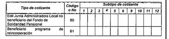 Edil de Junta Administradora Local” y “61 - Beneficiario programa de reincorporación”; así: