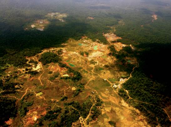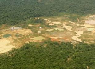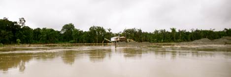 La primera forma es la minería aluvial que supone la extracción directa de metales del lecho de los ríos por medio de dragas de succión y aplicación de mercurio; la segunda forma es la minería de veta a cielo abierto por medio del uso de retroexcavadoras que levantan grandes capas de tierra, dando con ello apertura a perforaciones profundas en las que se utiliza también el mercurio para lograr la separación del mineral.
