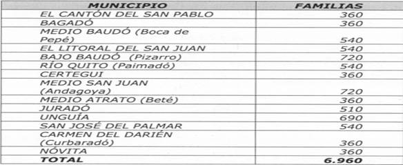 En la actualidad, el departamento del Chocó presenta índices de población según los cuales, el 48.7% vive en condición de pobreza extrema. De acuerdo al índice de Necesidades Básicas Insatisfechas -NBI- que mide si las necesidades básicas de la población se hallan cubiertas de acuerdo a unos criterios mínimos en las diferentes regiones del país, se encuentra que para esta región es del 82.8%, el más alto del país, dentro del cual cerca del 79% de sus habitantes presenta al menos una NBI, por lo que tienen el indicador más bajo en calidad de vida del país con el 58% frente al promedio nacional que es del 79%[7].