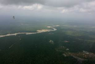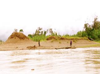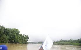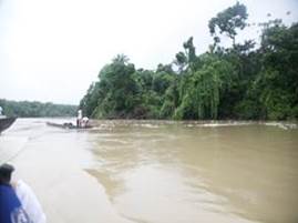 El profesor Olivero y Libia Grueso (de la ONU) coinciden en afirmar que afortunadamente aún hay zonas del río y de sus riberas (antes de que comience la zona minera) que presentan abundante capa vegetal y cultivos tradicionales. Sin embargo, la representante de ONU advierte que todo este panorama va a cambiar drásticamente cuando se ingrese en la zona de explotación minera. (Fotografías 19 a 22).