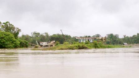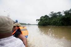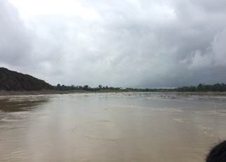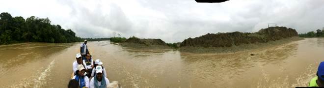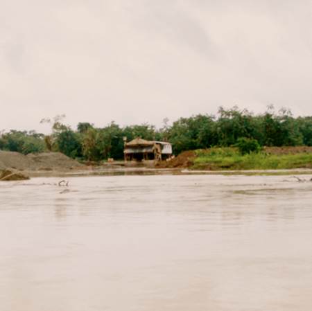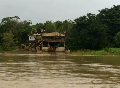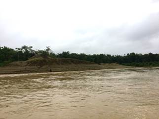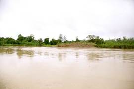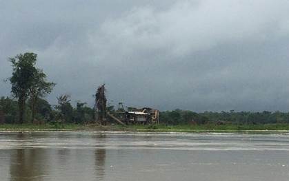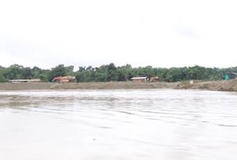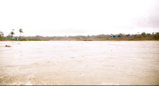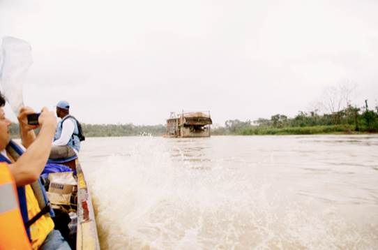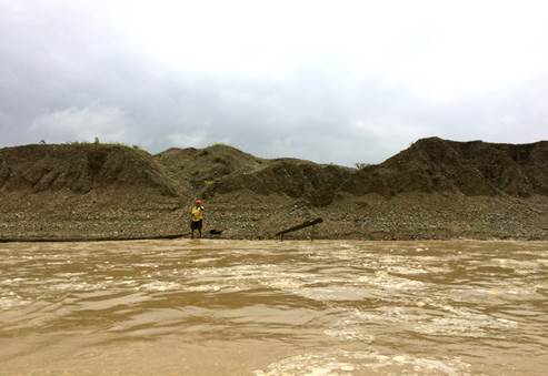 María de los Ángeles Sánchez, del FISCH, afirma que la población más cercana (Villa Conto, fotografía 66) está bastante cerca de la zona de explotación minera y se encuentra en grave riesgo de inundación por la erosión causada a la ribera del río. Por su parte, Neiro Antonio Cabrera, líder comunitario de Villa Conto, se muestra sorprendido por que aunque hay presencia de dragas y dragones, estas no están operando como lo realizan con normalidad (algunas están detenidas) y así no es posible apreciar completamente la magnitud de la destrucción que causan a su paso. No entiende por qué las dragas no están trabajando hoy. Sugiere que la información de la diligencia de inspección fue “filtrada” por el gobierno o por la administración local. (Fotografías 73-74)