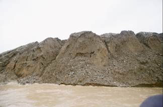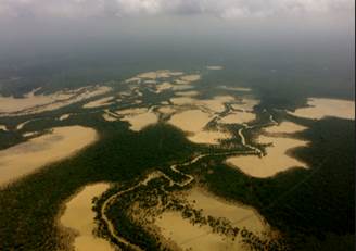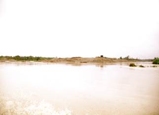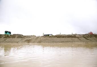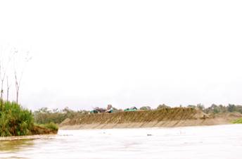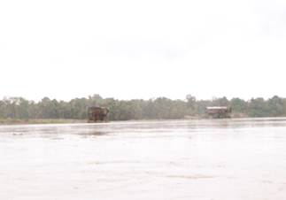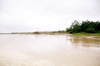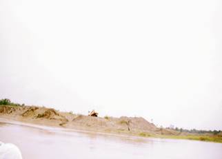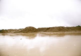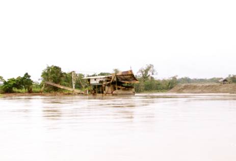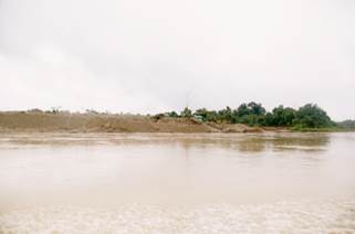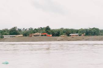 Sobre las 10:45 se arriba al sector de Villa Conto. En la zona se advierte presencia de dragas y dragones, así como numerosas islas de arena y escombros producto de la explotación minera. (Fotografías 65 a 72).