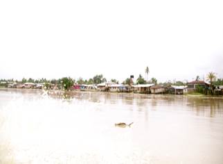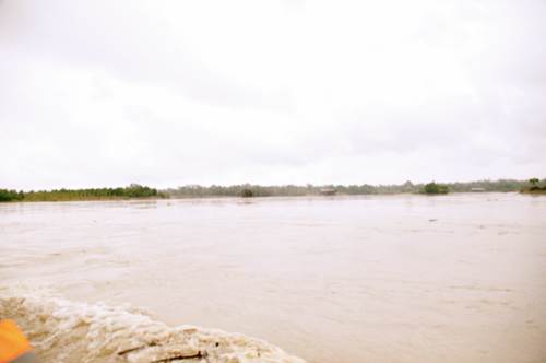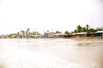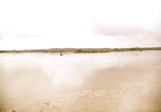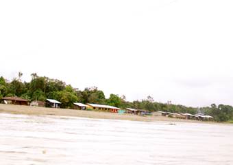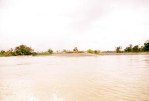 Siendo las 11:00 a.m. los botes alcanzan el sector de Paimadó. Pastor Caicedo, líder comunitario de Cocomacia, señala que el cauce natural del río era de 60 a 70 metros de ancho aproximadamente, pero que hoy -debido a la destrucción del mismo- ya no se puede determinar con precisión debido a las múltiples vertientes, brazos, basura, residuos químicos e islas de arena presentes, lo que constituye un gran deterioro ambiental, social y territorial. Afirma que el color del agua era diferente, la recuerda clara y cristalina, pero que hoy parece lodo y es muy oscura. Explica que el olor de las aguas también ha cambiado y hoy es desagradable. Considera que además son grandes las afectaciones que causa la minería a la salud y al medio ambiente, en concreto, señala que para las comunidades asentadas en las riberas del río Atrato y sus afluentes el río es la vida, lo es todo, y hoy ya nada pueden hacer en él: ya no se puede pescar porque los pocos peces que quedan ya no se pueden consumir debido a la contaminación. Agrega que tampoco se puede navegar porque ahora hay gran peligro de naufragio o de accidentes. (Fotografías 83 a 90).