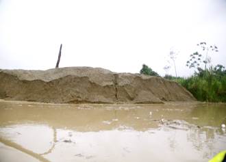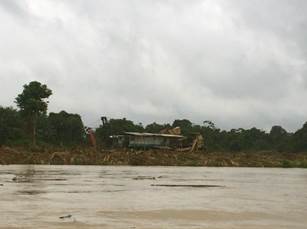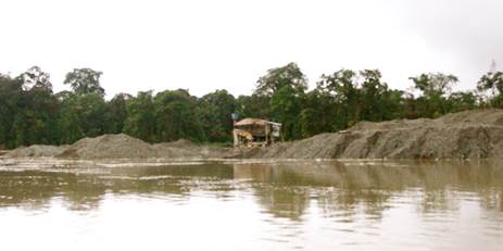 Neiro Antonio Cabrera, líder comunitario de Villa Conto, y Libia Grueso, de la ONU, advierten que una de las formas más frecuentes como los mineros destruyen las riberas del río es alterando su cauce original, como se puede observar en zona de Villa Conto donde el cauce del río ha desaparecido y en su lugar se aprecia como los bancos de arena ofrecen la apariencia de múltiples brazos que de hecho hacen muy difícil la navegación y confunden incluso a los guías porque ya no se sabe cual es el cauce del río. Agrega el líder comunitario que otra consecuencia de estas desviaciones son los constantes accidentes en botes, canoas y lanchas que se enfrentan a numerosas “islas y bancos de arenas”.