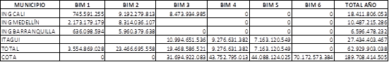 o Ingresos fuera de Bogotá [menos Cota] (igual)