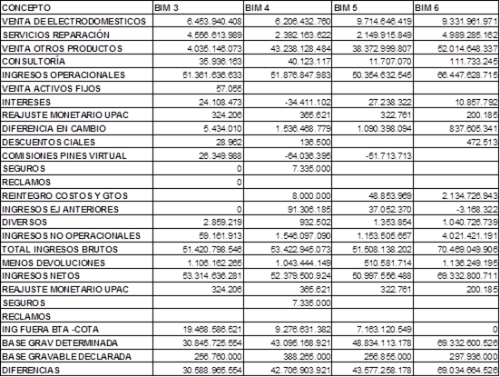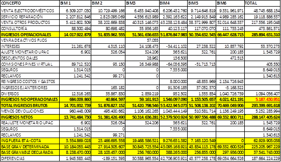 Como se puede apreciar, no hay un ítem que discrimine ingresos para terceros. Y respecto de los ingresos que según la demandante fueron adicionados, se advierte que está el ítem de venta de electrodomésticos, únicamente. No hay ítems que discriminen expresamente los ingresos por venta de pines virtuales y por la venta de tarjetas prepago.