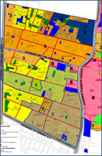 En esta imagen se puede observar que el área que corresponde al Sector Normativo 7 de la Unidad de Planeamiento Zona No. 11 San Cristóbal, tenía asignado en el plano del documento “FASE DOS” una parte del sector 3 y otra del sector 6.