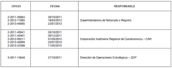 Para tal efecto la Secretaría Distrital de Planeación remitió a la Corporación Autónoma Regional de Cundinamarca - CAR y a la Secretaría Distrital de Ambiente - SDA mediante los radicados Nos. 2-2016- 56756 y 2-2016-56749 del 20 de diciembre de 2016 respectivamente, la documentación señalada por el artículo 11 del Decreto Nacional 2181 de 2006 (hoy artículo 2.2.4.1.2.2 del Decreto Nacional 1077 de 2015) relacionada con el plan parcial “El Chanco”.