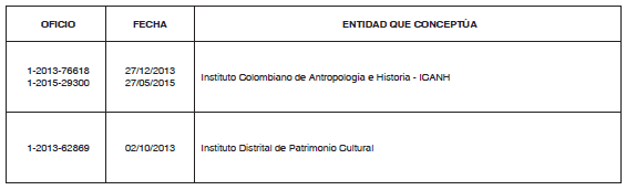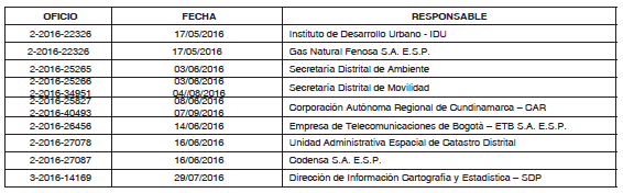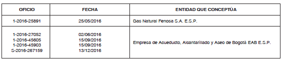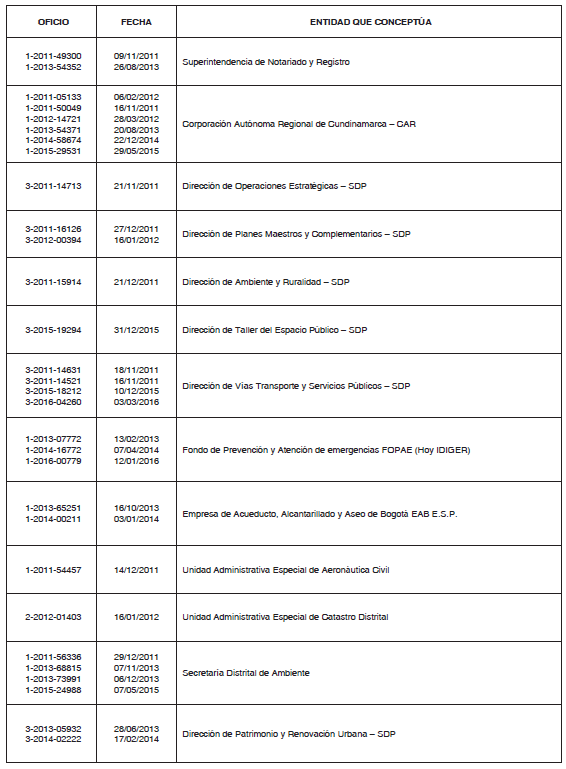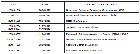 Que las entidades y dependencias requeridas emitieron concepto técnico mediante los oficios que se señalan a continuación: