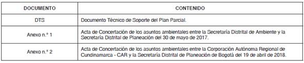 ARTÍCULO 30°. - CUMPLIMIENTO DE LOS REQUISITOS PARA LA FORMULACIÓN DEL PLAN PARCIAL CON LA AUTORIDAD AMBIENTAL REGIONAL. Los lineamientos ambientales que deberá cumplir el plan parcial concertados con la autoridad ambiental regional, son los contenidos en el Acta de Concertación del 19 de abril de 2018 suscrita entre la Secretaría Distrital de Planeación y la Corporación Autónoma Regional – CAR, así como la Resolución N.º 1676 del 20 de junio de 2018 expedida por la Corporación, que hacen parte integral del presente Decreto en el Anexo N.° 2.