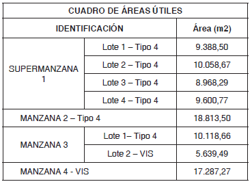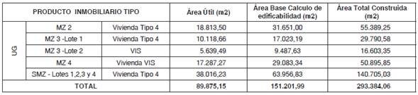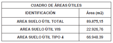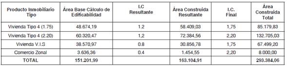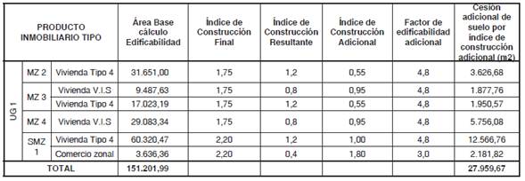 Nota. El área construida y las cesiones de suelo para cargas generales, se obtienen a partir del área base cálculo de edificabilidad (ver cuadro de áreas).