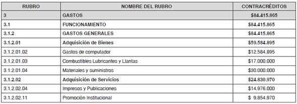 Que una vez revisada la estructura de la ejecución del Presupuesto de la Localidad de Rafael Uribe Uribe con corte a 22 de Octubre de 2018, se evidenció que en los rubros 3.1.2.01.02 “Gastos de Computador”, 3.1.2.01.03 “Combustibles Lubricantes y Llantas” 3.1.2.01.04 “Materiales y Suministros”, 3.1.2.02.04 “Impresos y Publicaciones” y 3.1.2-02-11 “Promoción Institucional se encuentran saldos disponibles sin ejecutar que no van a ser comprometidos en la presente vigencia.