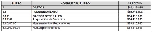 Que una vez revisada la ejecución del Presupuesto de la Localidad de Rafael Uribe Uribe con corte a 22 de Octubre de 2018 y atendiendo el estado de contratación en Gastos de Funcionamiento, se verifica la falta de recursos para el mantenimiento del auditorio principal y de la motobomba de la Entidad, razón por la cual se hace necesario acreditar el rubro 3.1.02.02.05.01 Mantenimiento Entidad.