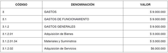ARTÍCULO 2. Efectúense unos créditos en el Presupuesto de Gastos de Funcionamiento del Fondo de Desarrollo Local de Bosa, por valor de nueve millones de pesos m/cte ($9.000.000.), conforme al siguiente detalle: