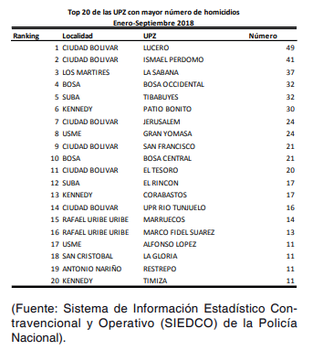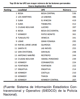 lesiones y hurtos, y que los mismos se presentan con mayor incidencia en la UPZ